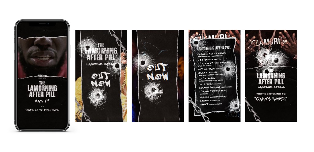 Lamorne Morris is an actor who released a comedy rap album called The Lamorning Afterpill in 2020. Amanda created digital assets for the album’s campaign and for the music videos that were released alongside.